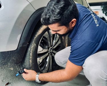 É uma inspeção detalhada para garantir a segurança do seu veículo.